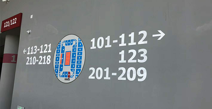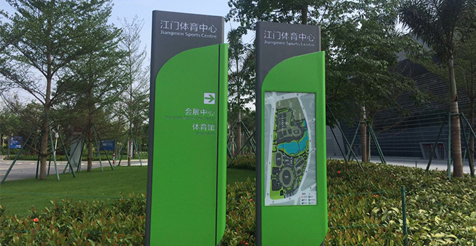 整套導視系統使用粗線條字體,色彩鮮明,具有高辨識度,使體育場呈現了一個結構化、連貫的體育公園形象。