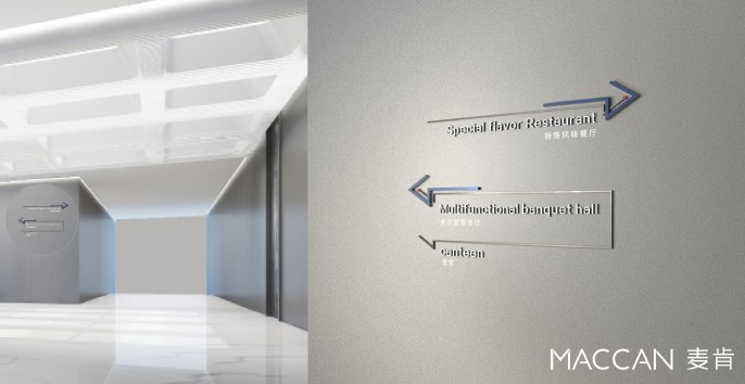 在廣州歸谷科技園公共導視核心元素提煉中,麥肯設計師分別從宇宙、星軌、科技概念里面提取了核心形狀、顏色以及線性的表達,以光為指引尋找未來的方向,引入未來感,賦予標識獨特亮點,科技元素成為標識的核心體現,以科技為手段觸及宇宙世界的真實本質,描繪出穿越時空的硅谷之旅。
