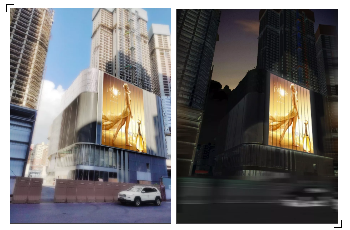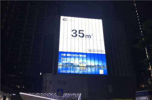 中洲燈箱廣告面積達410㎡,采用鋁型材活動門、可編程LED光源、高透光燈箱布等前沿環保材料,與玻璃幕墻完美融合。