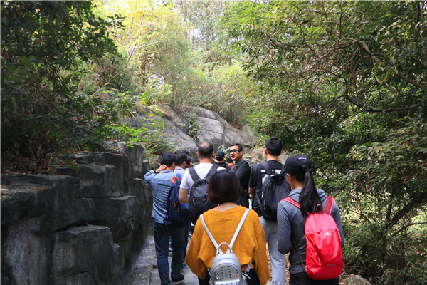 11月30日(周六早晨)在約定的時間內,小伙伴們陸續到達羊臺山,人員到齊后我們就出發啦。此時的青山翠綠蔥郁,空氣十分清新,讓整日對著電腦的上班族精神倍兒爽。