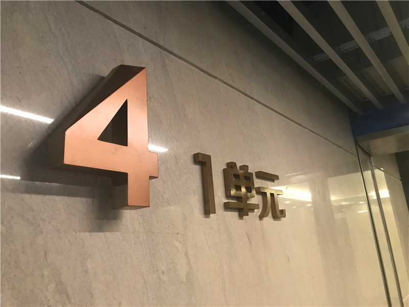一整套導視系統以質樸的金屬和明亮的電鍍拉絲不銹鋼飾面營造出溫暖的空間。在公共空間和停車場中,三維金屬字體與平面繪制的標識和圖形符號相輔相成,整套導視系統以易讀性和耐用性很好的貼合到架構中,為業主提供流暢的視覺體驗。