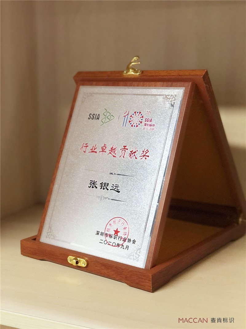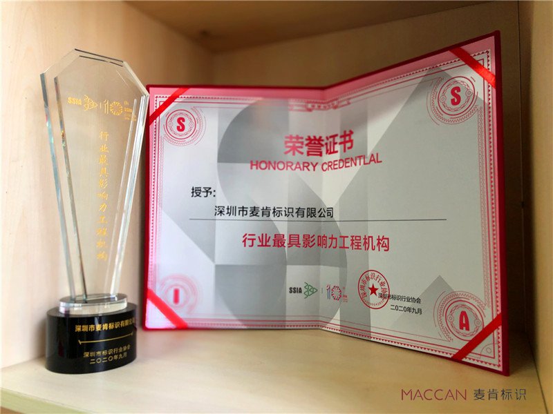 為樹立標識行業優秀品牌榜樣,深圳市標識行業協會對行業內有杰出貢獻,為行業發展樹立新標桿的企業頒發獎項,并舉行了隆重的頒獎儀式。深圳市麥肯標識有限公司總經理張銀遠先生榮獲“行業卓越貢獻”獎及“行業最具影響力工程機構”獎。