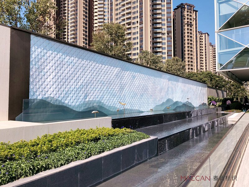 從初步構思之時,就對空間進行了探索性和引導性的實驗,如何將分層的空間有效的去引導與傳達,思考如何將標識指引藝術作品融入空間,成為空間的一個組成部分。以光之力,與藝相輔,結合材質鏡面與金屬元素,其結構的變化,令光的融合度也產生了變化,在日與夜的變化之中,通過微妙的色調改變著整個空間的氛圍。