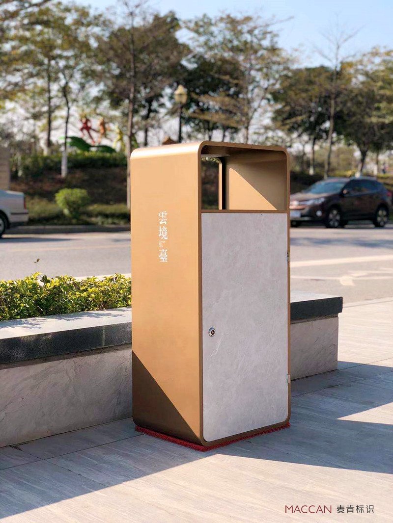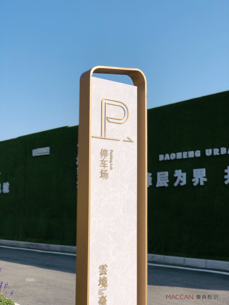 標識牌設計元素選取云境臺的建筑設計概念元素,融合鏡與水,帆與幾何體為一體,結合優雅的弧度,簡化建筑造型的棱角線條,秉持大道至簡,人與自熱的理念。
