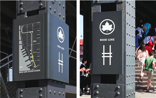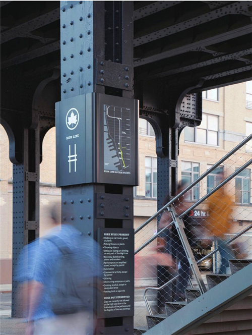 曼哈頓高架鐵路公園的導視系統引導行人穿梭公園