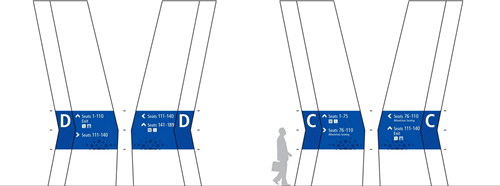 因此,對完善的導視系統來說,設置好標識牌的位置、文字所使用的尺寸、箭頭指引方向等,都必須嚴格規范。只有這樣,導向的功能才可以得到充分發揮,使導視系統發揮最大的作用。