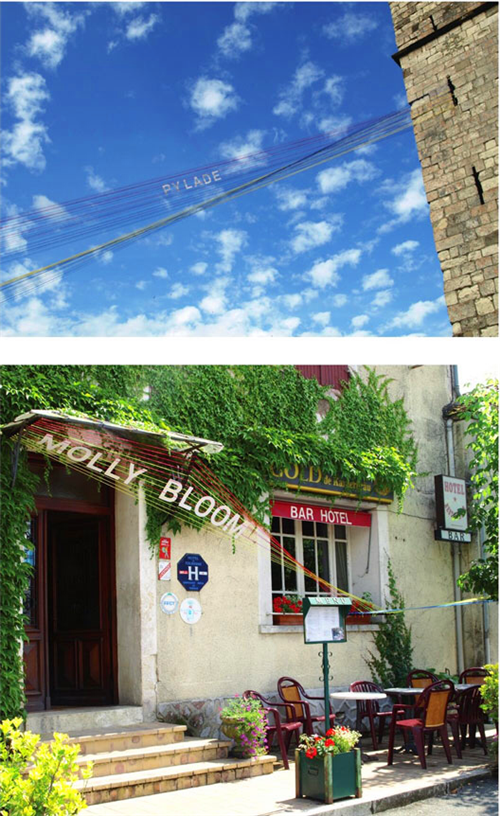 這套導視系統采用了長達15公里長的線,將村莊各個不同的劇場連接起來。目的就是讓游客可以在村莊里自由地選擇自己喜歡的舞臺劇。舞臺劇的名稱、具體信息和指示提醒信息等都可以在飄動的線上找到,這樣就省去了游客特意去尋找劇場的時間,因為隨處都可以發現這樣的標識線。