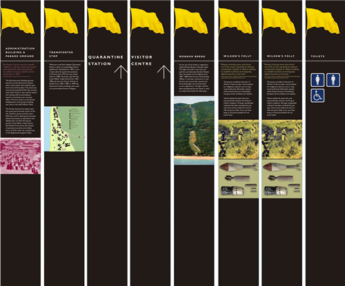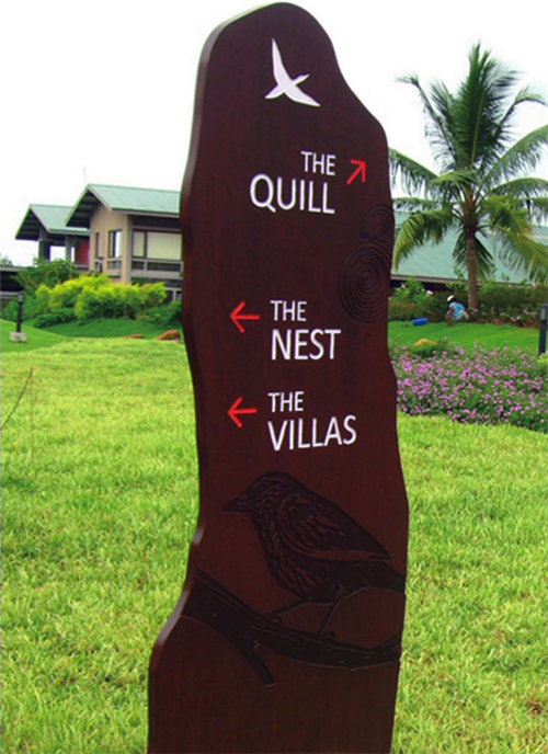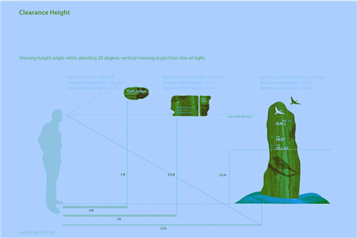公園的導視系統采用不同的動植物來代表不同區域的不同功能,例如,小鳥和海面等自然的形象。