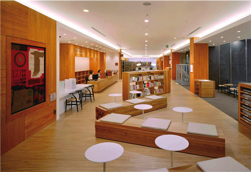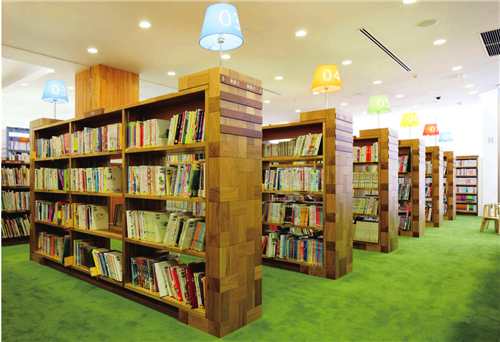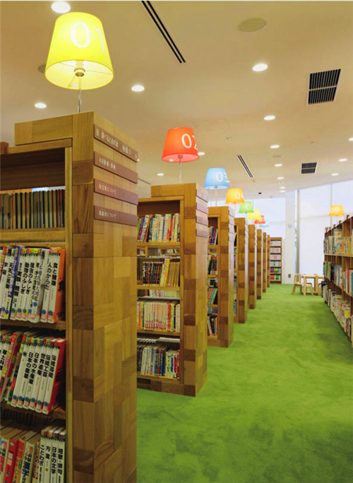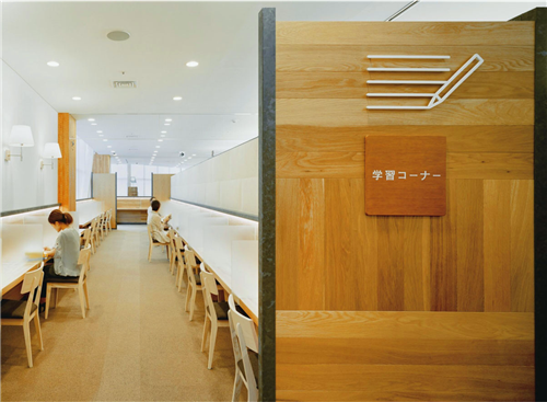 6D設計工作室受邀對2010年重新選址后的Kounosu中心圖書館進行室內設計和導視系統設計的工作。他們的目標就是要改變人們普遍對圖書館的看法,營造一個令人感覺舒適而愉悅的空間,例如,選用木板來取代以往的人工材料,擺脫以往的刻板和嚴肅形象。