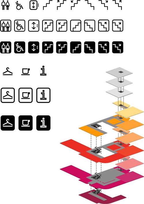 導視系統的設計在一定程度上展現了大樓的歷史底蘊,主要還是對以往的導視系統招牌做一個翻新和變革。字體的設計仿佛將人們帶回了那個熟悉的20世紀30年代。通過融合了antiqua和grotesque的字體設計之后,字體讓人感受到現代氣息的同時,仍透露出歷史的古老閱讀氛圍。