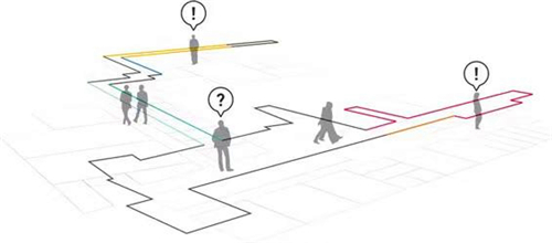通過分析不同的信息,讓受眾第一時間內掌握信息和位置,設計師通過設計簡捷的導視系統來讓受眾第一時間掌握清晰的信息。而且,直線的設計是最原始的設計,應用到導視系統中同樣也會令人產生不錯的導視效果。