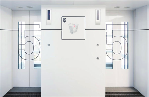 設計師決定將以前的室內設計進行革新,重新為墻體刷油漆,將樓層的信息都盡量呈現在每個樓層的頂部。在任何可見的地方都盡可量地使用大型的字體和圖形來將信息第一時間傳達給大眾。