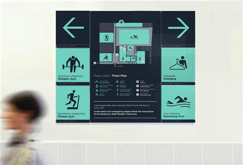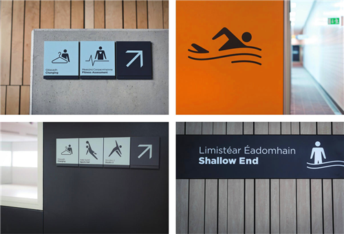 Detail.設(shè)計(jì)工作室為都柏林休閑中心設(shè)計(jì)了一套標(biāo)識(shí)和導(dǎo)視系統(tǒng)。設(shè)計(jì)團(tuán)隊(duì)還與設(shè)計(jì)師McGarry Ní éanaigh和建筑設(shè)計(jì)師Donnelly Turpin共同合作,設(shè)計(jì)一套人形的插畫標(biāo)識(shí)。全套導(dǎo)視系統(tǒng)遍布了中心的各個(gè)角落。