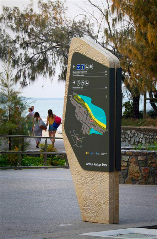 除了以上這四點重要原則,藝術化與個性化也是為設計要考慮的一大方面。設計時應保證與景區規劃設計風格、主題相統一,達到服務游客,又提升景觀的作用的效果。此外,景區標識標牌無尖銳利角、結構安全牢固、便于游人查看閱讀和使用、標識標牌位置布局科學合理等都是人性化公園標識的設計要求。總之,一切以方便游人和景區管理為宜。