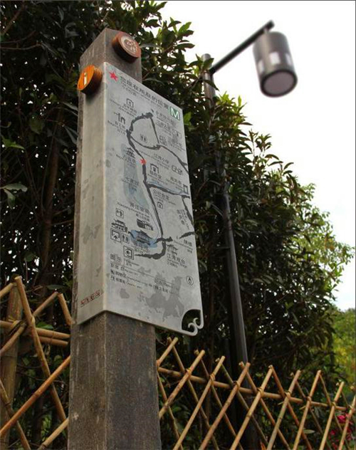 導視系統標識牌布局密度應保持在一個合理范圍,具體范圍應參照景區大小、景點分布、地形高差、道路游線設計進行界定,還應做到層次清晰,有效突出參觀游覽的重點。