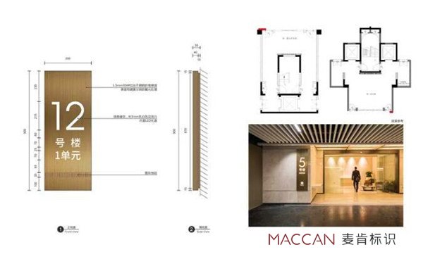 正弘臻的導視設計處處遵循視覺的秩序和美感,無論是高貴典雅的開放空間,還是靜謐寧靜的私人空間,標識材料之間的拼接精確到毫厘之間,只為追求極致的工藝品質,符合正弘臻的豪宅形象。