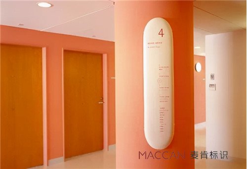 同樣是醫(yī)院,如果是兒童醫(yī)院該是怎樣?與剛才白布應(yīng)用不同,設(shè)計(jì)者將兒童醫(yī)療中心的墻體都粉刷成孩子喜歡的彩色,在純色墻面上繪制可愛的標(biāo)識形態(tài),小朋友一定喜歡,讓醫(yī)院的環(huán)境不再那么冷冰冰。毫無疑問,這樣的設(shè)計(jì)讓兒童醫(yī)療中心更加人性化。