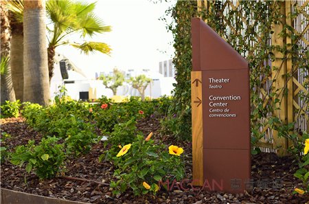 從造型上看,標識系統根據環境或區域的不同,總是以最為簡練的造型來體現事物的全體特征。文字上,盡可能簡略,只需可以說清楚標識內容就行。造型的簡練明快并不是意味著簡略、機械式的復制,標識造型的簡練明快是將自身作為環境全體的一部分而言的,并不是說簡略的就是好的,而是在標識造型規劃中,全部過多的、不必要的元素堅決摒除。要確保標識系統與城市或地域的全體環境在形狀上與內在上諧和一同,這是標識系統造型規劃的基本要素之一。