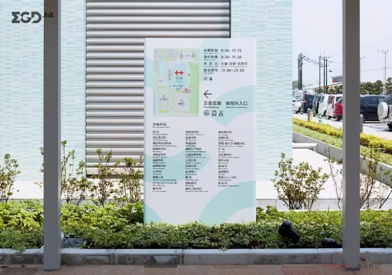 從患者接受醫療服務的流程上充分考慮標識的傳接性。在所有患者感到困惑的位置安裝、放置必要的標識,使前面的標識功能傳接下去,實現標識接力。本文醫院標識分類中級別分類部分將提到,一位患者到醫院就醫,最多可能接觸到六個級別的標識,引導患者順利通往目的地,保證標識級級相接非常重要。