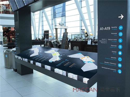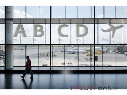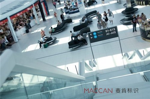 機場因為是公共空間,必須要考慮設計的標牌放置在空間中是否能讓人一眼看到,這時候就需要考慮到墻壁和窗戶的顏色、建筑采光量、建筑照明角度等等影響視覺的因素。另外,機場因為客流量大,客群多樣,所以需要注意標牌的可讀性,設計的標識需要通俗易懂。