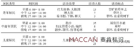 環境總在不同程度上對人們的行為活動起著制約的作用, 在不同的環境中對人們的心理、行為可產生不同的效果。同樣的,小區住宅空間環境的特征與人的行為活動之間存在一定關系,以下分別對幾種典型的小區內人行為活動進行分析。