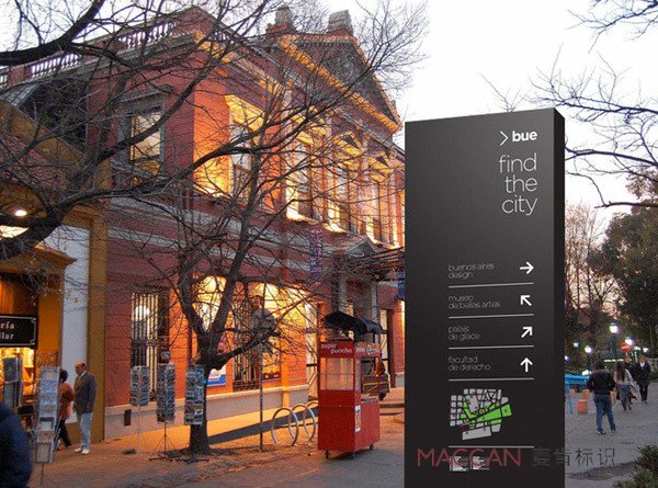 商業街區指路標牌設計要與城市風格吻合,務求達到整個城市的和諧統一。如果商業街區指路牌設計風格不統一、不協調,不僅不會成為城市亮麗的風景線,反而會使城市缺乏整體感,成為雜亂的城市樂章。商業街區指路牌設計要做到與城市風格相吻合,應該在城市主色調——城市色彩的大方向要求的基礎上,結合周邊已存在的城市建筑以及自然環境的基調作相應的調整。再者,在結構、造型材質上都應體現并符合所在城市的民俗風范、地理氣候特征。