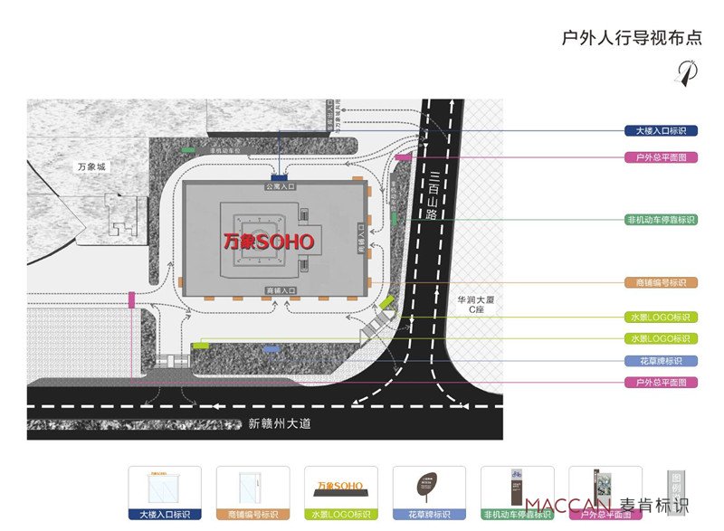 通過導視系統的引導集中了商業中的流線,滿足設計原則中的可達性原則,人流的集中意味著人們有更多見面、接觸的機會,也意味著更多的活動的發生,商業也更加有人氣。