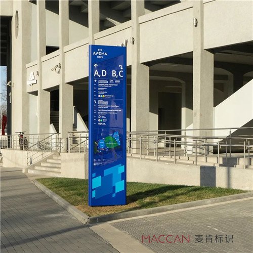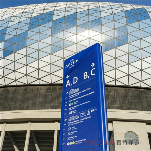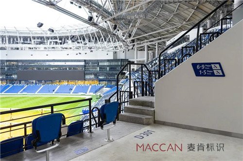 與此同時,體育場館導視系統除了具有給予場地的使用者以路線指示、人員分流作用以外,對于體育場館的安全保護也承擔了重要的智能。合理、清晰、有效、適度的場館標識系統設計就像是場館的眼睛一樣保障著場館活動的順利開展。