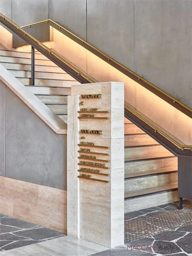標識導視系統作為設計元素出現在酒店空間,而易懂,方便閱讀,準確傳達信息作為重要功能作用存在于酒店空間。
