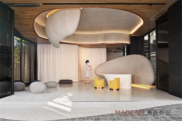 在母嬰護理中心中,完善健全的標識導視系統為就產婦提供護理中心各科室信息并合理規劃就診路線,借助這些導視標識,產婦和來訪者可以順利達到自己的目標位置。