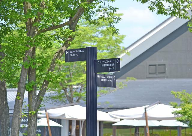 川場村,是位于日本群馬縣一個小型旅游景點,景色優美,溫度適宜,很受游客歡迎,每年有大致120萬游客到訪。因為預算有限,設計師采用了價格低廉的瓦楞板來做標識牌。金屬瓦楞板耐腐蝕,而且材料可以讓人很容易聯想到自然和“耕作”,和川場村大量依賴農業經濟的實際情況相符合。但是瓦楞板的波浪形表面,導致直接寫在瓦楞板上的內容很難別識別,需要經過設計處理,讓標識顯得有節奏感。