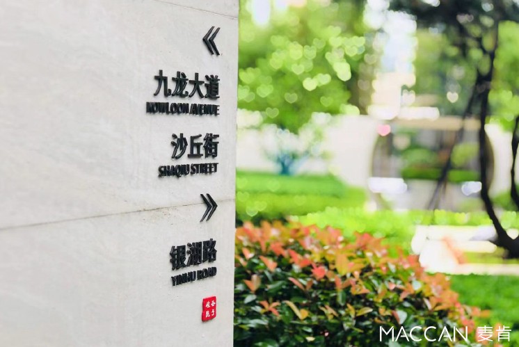 走進望山,逛潤園、漪園、篁園、逸園,再側轉進麓園,賞映湖,在入口巧遇“梅蘭竹菊”四君子,透過導視系統營造低調不張揚的美學氛圍,才感受梅花的 “疏影橫斜水清淺,暗香浮動月黃昏”,又聞到蘭花的“酒闌展卷山窗下, 習習香從紙上來”,麥肯設計用當代詩意重構空間內外山水意境。
