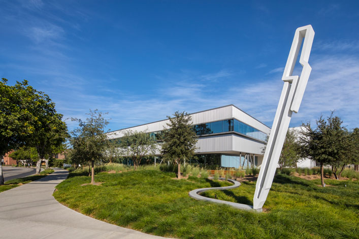 EGG Office從該項(xiàng)目廠址曾經(jīng)是一家紙業(yè)廠的歷史中汲取靈感,為這個新的創(chuàng)意園區(qū)設(shè)計(jì)出現(xiàn)代和統(tǒng)一的辦公導(dǎo)視。這個適應(yīng)性再利用項(xiàng)目包括位于洛杉磯輕軌博覽線站對面的兩個建筑物中的20萬平方英尺。EGG Office利用筆的線性概念來完成特定地點(diǎn)的標(biāo)牌設(shè)計(jì)和圖形設(shè)計(jì)。為了吸引工廠周圍的注意,設(shè)計(jì)師創(chuàng)建了雕塑燈塔作為項(xiàng)目的主要標(biāo)識。他們還利用黑白調(diào)色板和流行色為兩維和三維環(huán)境圖形元素上色,以補(bǔ)充建筑師所開發(fā)的色彩斑斕的水平圖案。