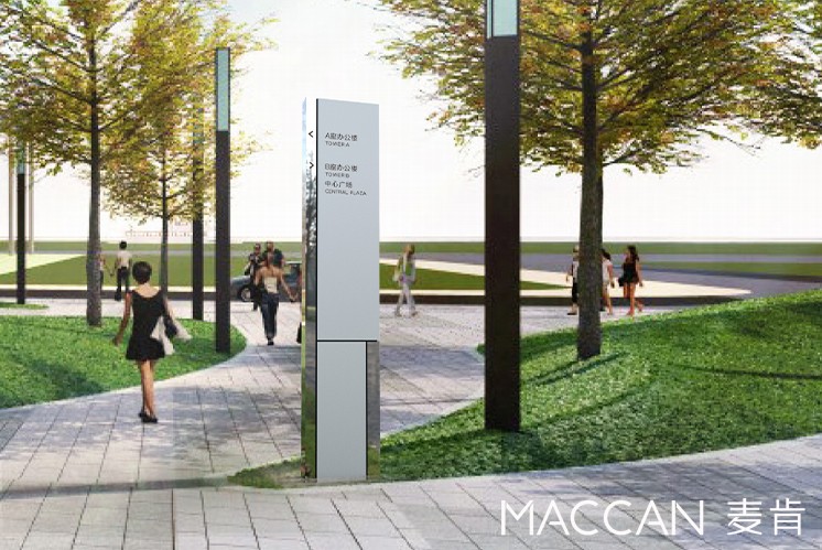 眾所周知,辦公樓標識系統按照功能可以分為幾個類別,第一個就是戶外標識的形象立牌,這與品牌內涵vi緊密相關,辦公樓的形象標識牌主要用于展示單位或者企業形象。簡潔明快、材料時尚新穎可以直接展示企業的實力,同樣也是商務的初次交流印象感知來源。第二個則是建筑分布總平面圖,輕松定位所處位置,第三則是交通標識牌,規范樓宇之間行人、車的交通等,還有一些零散分類的標識牌,統一體現出品牌性,與周邊環境融合、不突兀、仍是一個重要的設計話題。那么,在辦公樓標識設計中,如何將品牌內涵與環境完美融合呢?