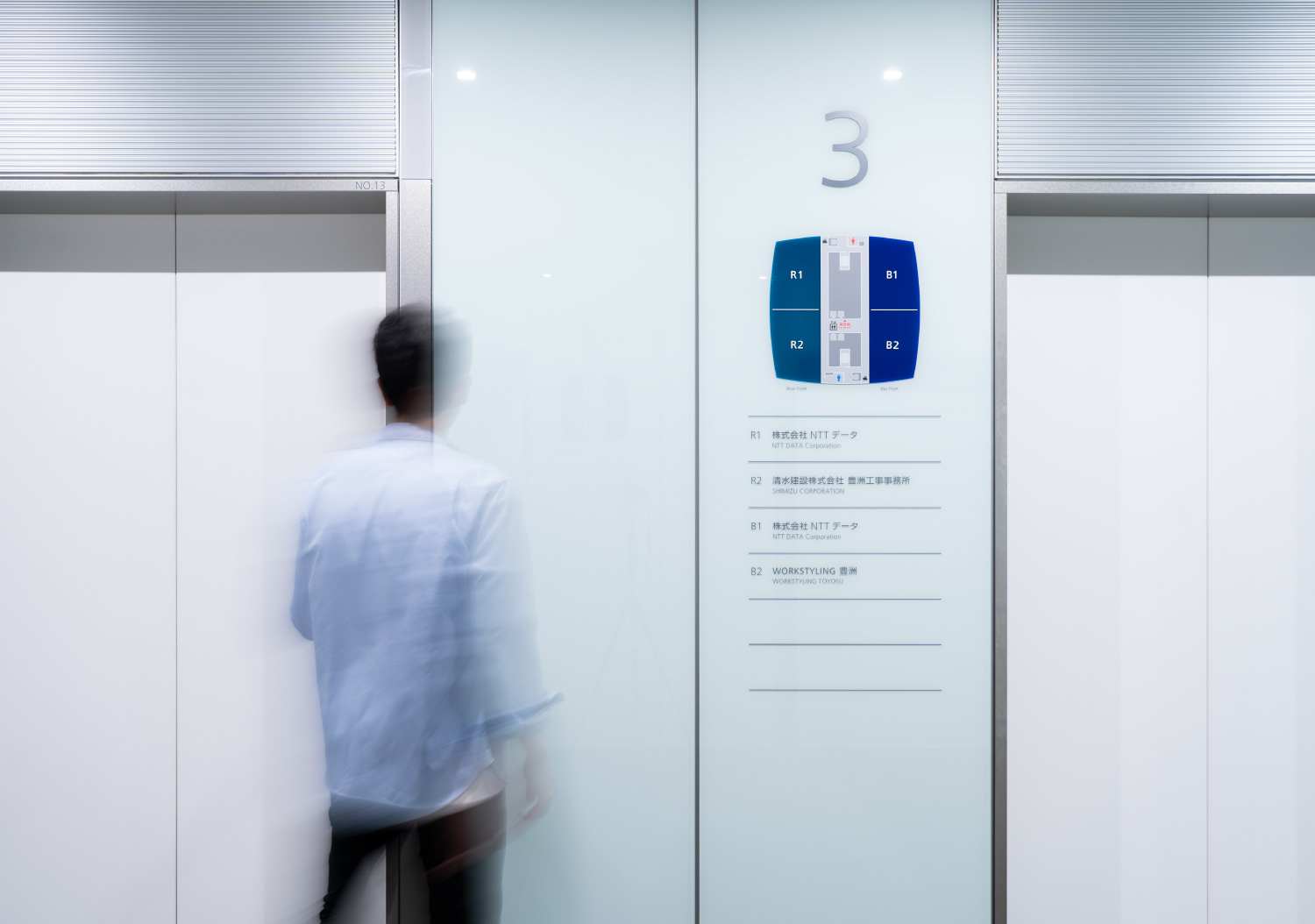 豐洲中心大樓位于日本東京都江東區,地處海灣區域,平面圖接近正方形,擁有完善的辦公和配套設施,uji設計公司受邀為其進行導視系統設計。
