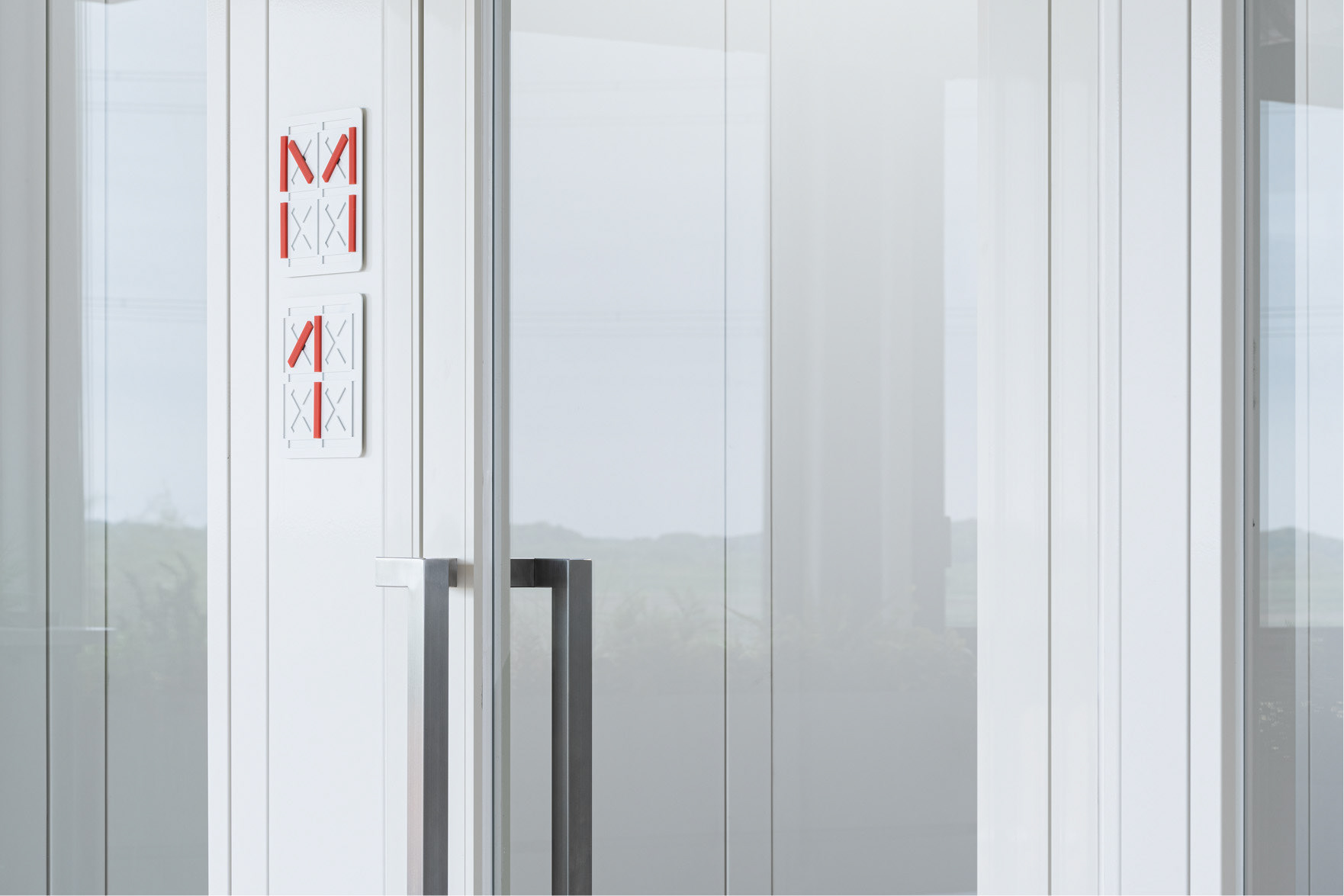 take moto設計公司為MS LAB大樓提出了一套靈活的標牌方案,使用磁條來顯示字母和icon。磁條排列在141 x 141 毫米的方形網格板上,可以隨意更替信息內容,每塊面板的背面都貼有磁塊,獨立的、方便拆卸的標牌滿足了公司的高度靈活性和創造力。