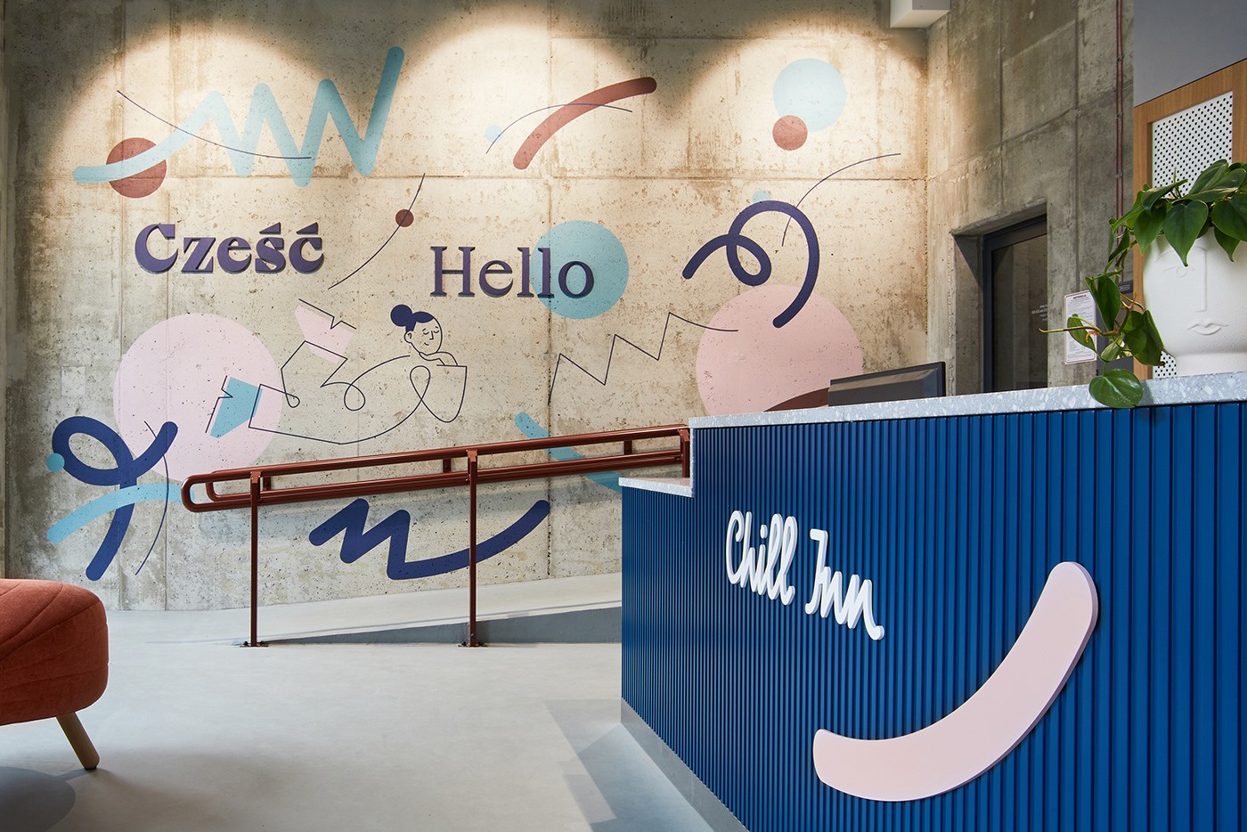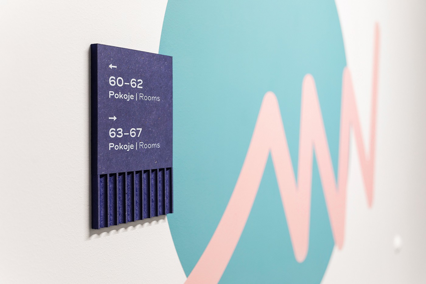 基于宿舍的環(huán)境,Blank工作室設(shè)計(jì)了豐富的環(huán)境圖形,圖形的特點(diǎn)是流暢、抽象的線條,增添了趣味性。采用藍(lán)色、粉色和棕色的配色,營(yíng)造了溫馨的環(huán)境,并與空間相得益彰。標(biāo)牌采用噴漆和中密度板的形式,整套導(dǎo)視系統(tǒng)賦予空間獨(dú)特的個(gè)性。跳動(dòng)的粉色和藍(lán)色是活力的代表。