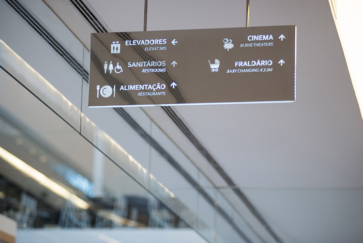 JK Iguatemi購物中心位于巴西圣保羅,是當地為數不多的擁有一線品牌的商場,旨在提供優質的購物體驗,2buy公司受邀為其進行導視系統設計。基于商場的建樹外觀和內飾, 2buy公司采用鏡面鋼和燈箱材質,燈箱兩面均使用帶有鏤刻信息的鏡面鋼貼面,信息清晰可見,便于夜間尋路。標牌外觀與空間相得益彰,打造了清爽、現代的購物環境。
