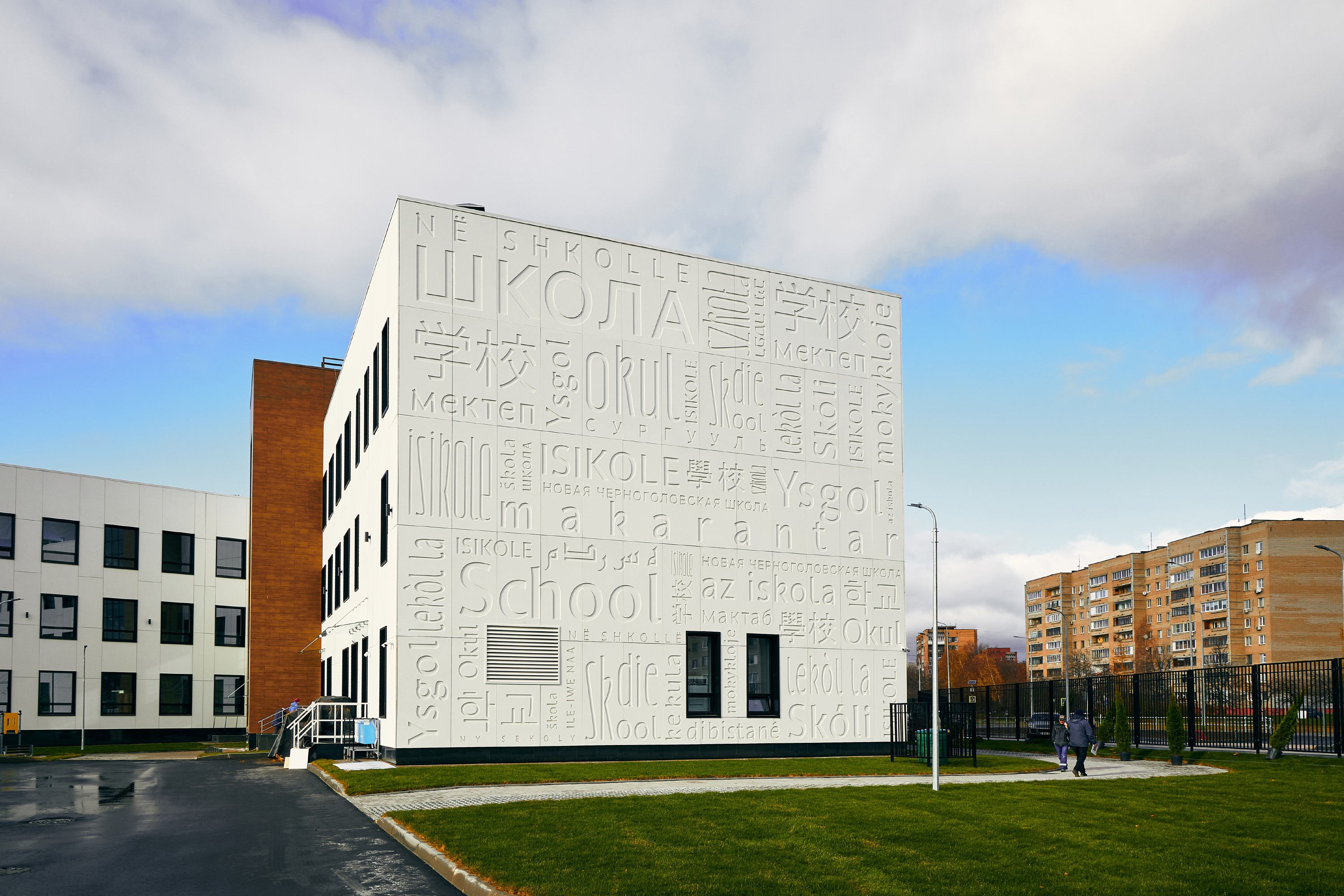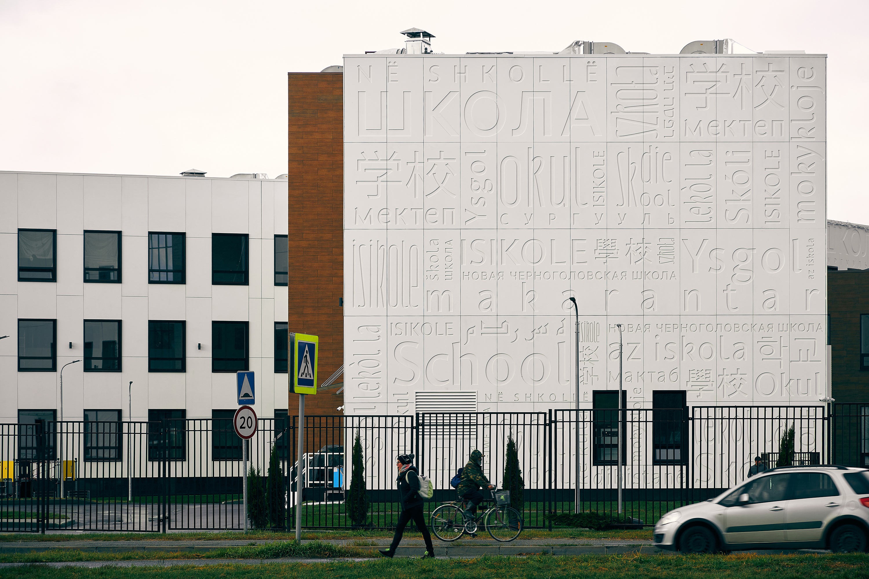 切爾諾戈洛夫卡學校位于俄羅斯莫斯科切爾諾戈洛夫卡市,是一所現代化且便利的私立學校。學校建筑空間與城市的極簡主義建筑相呼應,外立面裝飾著簡潔的反浮雕:用三十多種語言書寫的“學校”一詞的文字組合,Sergey Scoler受邀為其進行導視系統設計。