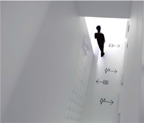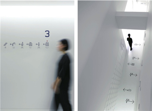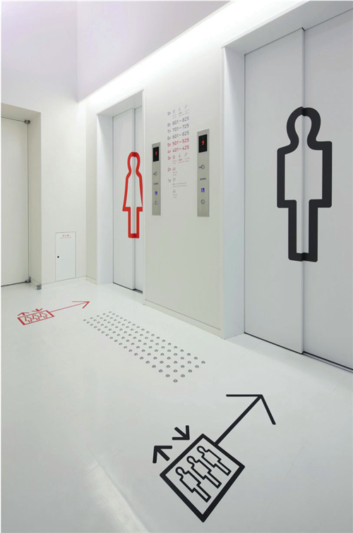 平面設計師、室內設計師和產品設計師在設計前期經過不斷地討論和研究,通過分享不同設計領域的設計理念,最終讓想法變成現實。就導視系統而言,墻體上和地板上的圖示符號清晰、明了地指明不同設施的位置,對于不同語言的外國游客同樣適用。