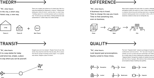 用純灰色和白色作為主色調,是為了營造一個寧靜、安逸的獨立空間。墻上和室內的大型標識是為了客戶得到清晰、明了的指引。黑色的墻壁、清晰的標識、低矮的天花板、靜謐的空間、通過舷窗領略到的景色,讓人們不禁幻想自己在夢境中暢游。