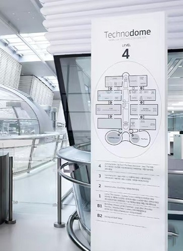 導視系統的設計還考慮到了無障礙需求,部分標識牌配有盲文說明,為視障人士提供了便利。整體而言,韓泰輪胎企業總部的導視系統以其簡潔的風格和高效的指引功能,為訪客和員工營造了一個舒適便捷的辦公環境。導視系統之簡潔,猶如白描之畫,寥寥數筆,勾勒出企業之精魂。其無華之姿,卻自有其獨特之魅力。