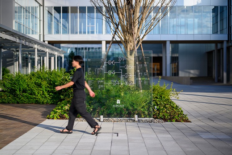 在校園的公共空間,導視系統以藝術的形式傳遞校園的文化氛圍。在廣場上,導視系統以雕塑的形式出現,將校園的歷史、文化、精神融入其中。那些雕塑,或以青銅鑄就,展現歷史的厚重;講述著卡納澤工藝大學的過去、現在和未來。