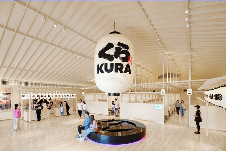 庫拉壽司臺灣高雄旗艦店位于高雄時代大道,占地約2000平(約6600平方米),是品牌全球范圍內規模最大的旗艦店。該店由日本著名設計師佐藤可士和(Kashiwa Sato)操刀設計,他以現代日式風格為基礎,融入了豐富的日本傳統文化元素。佐藤可士和的設計理念不僅在于打造一個用餐空間,更在于通過空間設計傳遞日本飲食文化的精髓。