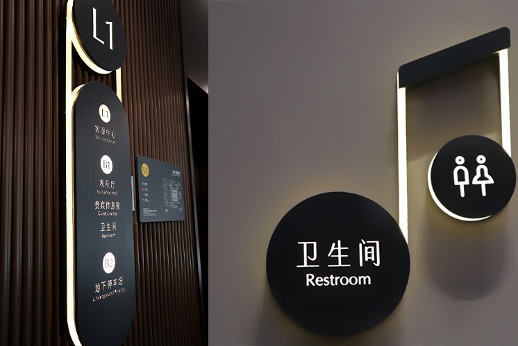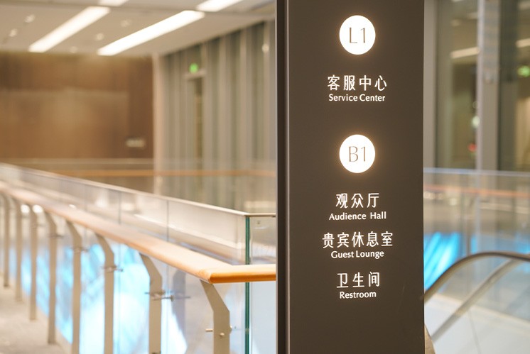 麥肯標識在設(shè)計過程中,充分考慮了廣州塔劇場的建筑風(fēng)格和文化內(nèi)涵,將現(xiàn)代設(shè)計理念與嶺南文化元素相結(jié)合,使導(dǎo)視牌與整個劇場環(huán)境相得益彰。導(dǎo)視牌以簡潔的黑色為底色,沉穩(wěn)而內(nèi)斂,宛如夜幕下靜謐的舞臺,期待幕布漸開的表演。這種色彩選擇不僅突出了導(dǎo)視牌的現(xiàn)代感,也與廣州塔的高科技和時尚風(fēng)格相呼應(yīng)。導(dǎo)視牌不僅僅是藝術(shù)的展示,更是觀眾的指引者。它以極簡之姿,承載著指引之責(zé),在方寸之間勾勒出劇場的每一處細節(jié)。從主劇場的恢弘到小劇場的精致,從觀眾入口的便捷到休息區(qū)的舒適,導(dǎo)視牌都能一目了然地呈現(xiàn)給觀眾。