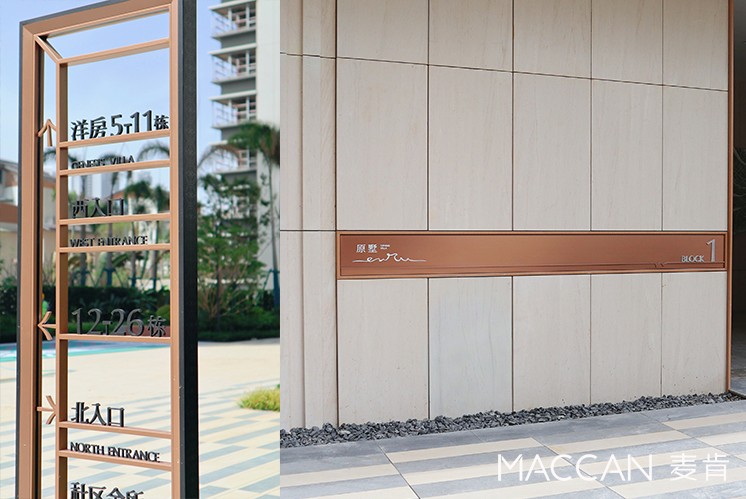 在中山市馬鞍島上,中山原墅以其獨特的魅力矗立于這片土地,成為高端住宅的典范。而在這片充滿詩意與雅致的住宅之中,導視牌不僅是簡單的標識,更是藝術與功能的完美結合,承載著深厚的文化底蘊與現代美學的融合。