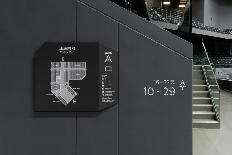 標識系統充分考量場地的廣闊與功能復合性。從室外場館外的大型標識牌,到室內場館的座席指引,不同尺度、形態的標識,精準嵌入建筑結構與空間布局。室外標識利用建筑柱廊、開闊廣場的空間特點,以立體、醒目的形式,為來訪者指明方向;室內標識則貼合墻面、通道等環境,如座席案內標識,借助墻面載體,清晰呈現空間信息,適配體育場館人流密集、需快速導覽的場景,讓標識成為串聯廣闊場地各功能區的 “隱形紐帶”。