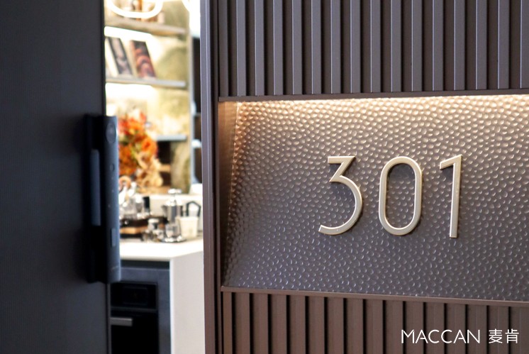 此次標識采用鋁板切割立體字工藝,線條利落流暢,造型簡潔大氣。同時,標識表面經過防指紋處理,可長久保持光潔如新的狀態,即便頻繁觸摸,也能維持精致質感。色彩上,亮黑、古銅、槍灰等色調的運用,盡顯奢華質感,精準契合項目的高品質定位,從視覺層面直觀傳遞出項目的高端屬性。