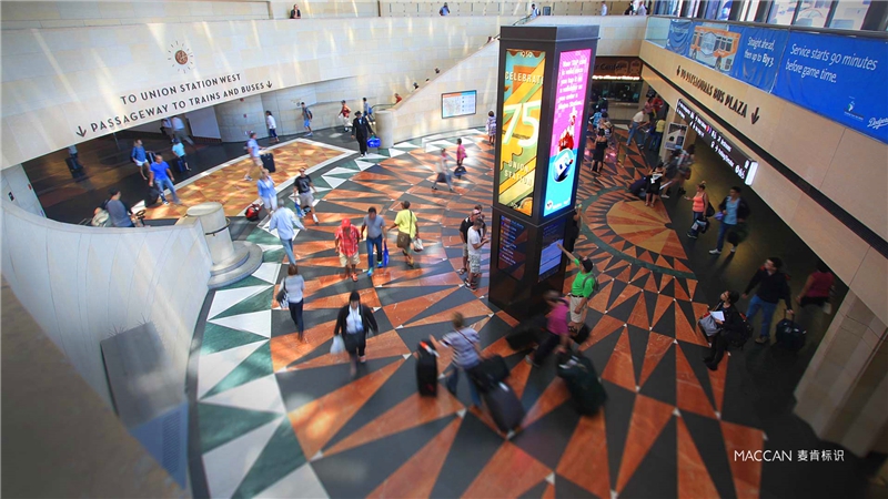 現(xiàn)代社會,標識標牌早已滲透進我們?nèi)粘I钪械拿恳粋€角落:從每日必經(jīng)的馬路上的指示牌,到各種公共場合里導視標識。數(shù)字技術(shù)的發(fā)展為標識導視系統(tǒng)帶來了更多的可能性,使標識導視系統(tǒng)逐漸從傳統(tǒng)的靜態(tài)通信形式發(fā)展到動態(tài)演示的數(shù)字標志系統(tǒng)形式。導向系統(tǒng)不再局限于信息傳播的硬件設(shè)施,而是更多地體現(xiàn)為一個信息系統(tǒng)項目,其主要特點是交互性、用戶識別、用戶體驗、信息集成等。