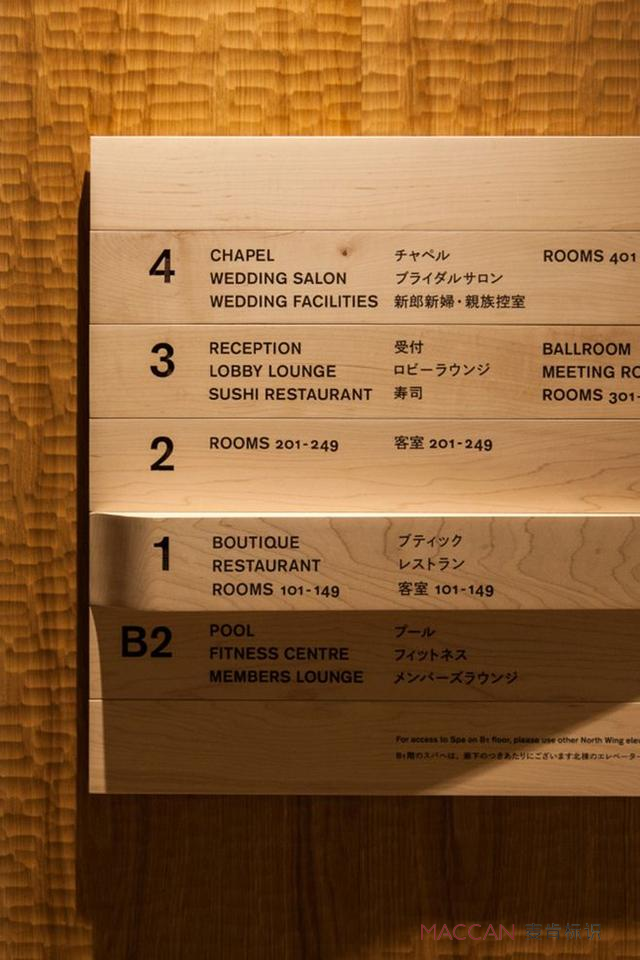 一般酒店的洗手間、大堂、地板、房間、餐廳、地下車庫、會議中心、水療中心、游泳池、酒吧、健身中心、氧吧、服務臺、行政大樓和其他很多區域都必須依靠靜態酒店標識來進行引導指示。信息的傳遞使酒店能夠更好地運營,并讓客人對酒店的所有區域有更清晰的方向感。酒店室內靜態標識主要以壁掛式、懸掛式和現場式的形態安裝在酒店的公共區域。設計必須符合酒店的整體風格,導向功能必須準確和人性化。其次,酒店的內部標識都可以近距離看到,這就要求它們更精確、更深刻、更詳細。如此這般會讓酒店無論是在欣賞還是引導指示功能上都得到一種品位與文化的升華。